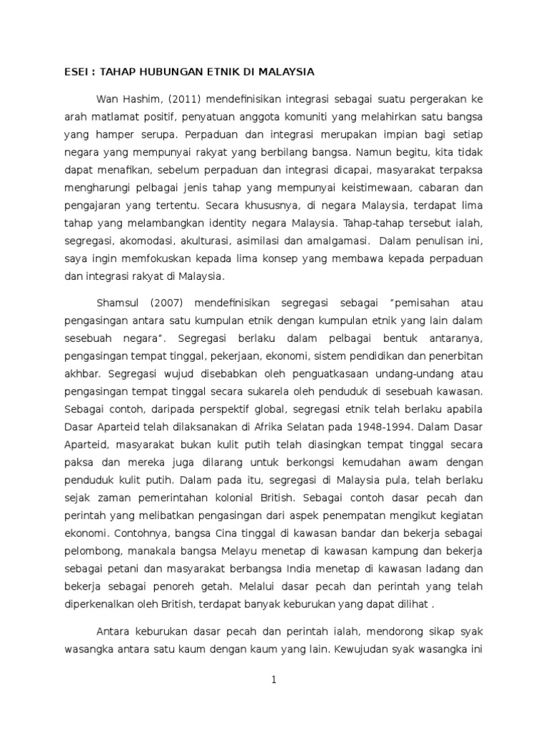 Hubungan Etnik Assignment 1 0 Pendahuluan 1 1 Pengenalan Hubungan Etnik Adalah Salah Satu Daripada Aspek Penting Dalam Kehidupan Manusia Kerana Course Hero